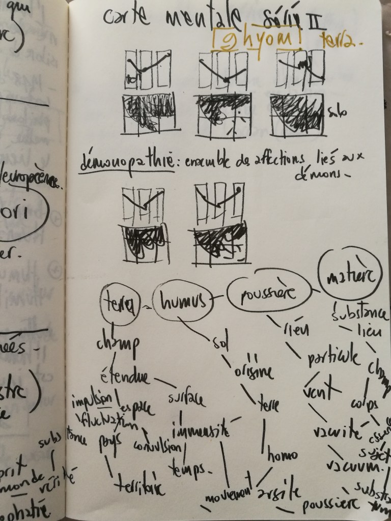 Atlas, carte mentale. Ghyom et Caelestis. Polyptyques. 2023Atlas, carte mentale. Caelestis. Détail, pigment, liant et glacis sur papier Rives. 2023.Atlas, carte mentale. Caelestis. Détail, pigment, mine de plomb sur papier Rives. 2023.Atlas, carte mentale. Caelestis. Détail, pigment, mine de plomb sur papier Rives. 2023.Atlas, carte mentale. Caelestis. Détail, pigment, mine de plomb sur papier Rives. 2023.Atlas, carte mentale. Caelestis. Détail, pigment, mine de plomb sur papier Rives. 2023.Atlas, carte mentale. Caelestis. Détail, mine de plomb sur papier Rives. 2023.Atlas, carte mentale. Caelestis. Détail, mine de plomb sur papier Rives. 2023.Carnet de notes. Proxémie et définition des mots. 2023.