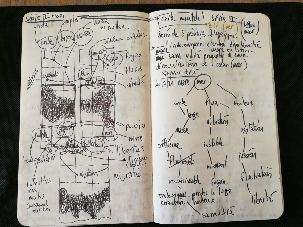 Atlas, carte mentale. Mori. 2024.Atlas, carte mentale. Mori. 2024.Atlas, carte mentale. Mori. Détail, pigment et mine de plomb. 2024.Atlas, carte mentale. Mori. Détail, pigment et mine de plomb. 2024.Atlas, carte mentale. Mori. Détail, pigment et mine de plomb. 2024.Atlas, carte mentale. Mori. Détail, pigment, liant et glacis sur papier Rives. 2024.Atlas, carte mentale. Mori. Détail, pigment, liant et glacis sur papier Rives. 2024.Canet de notes. Proxémie des mots. 2024.