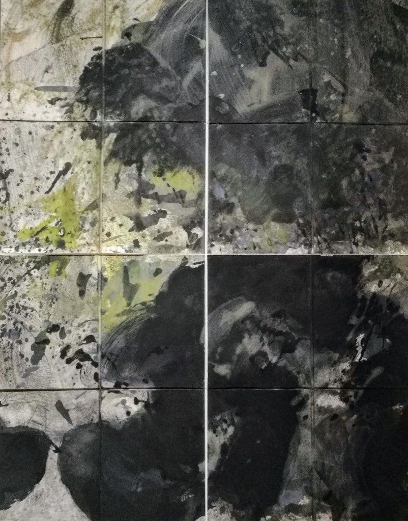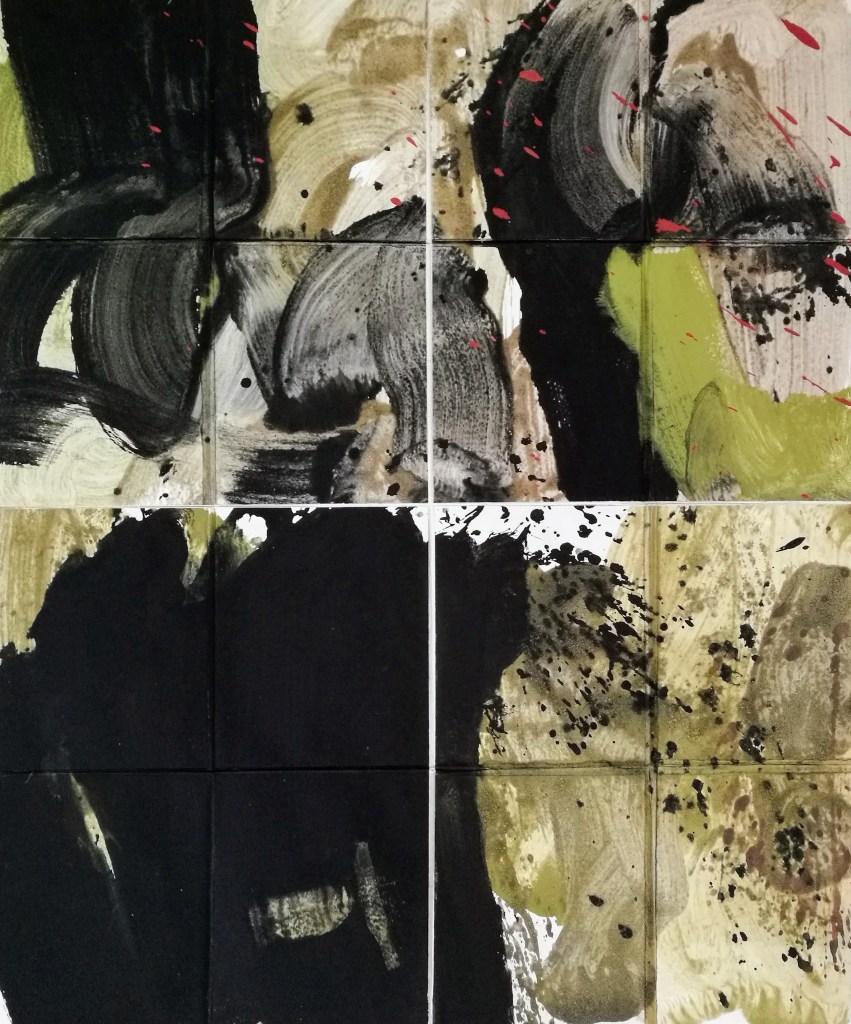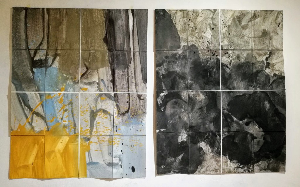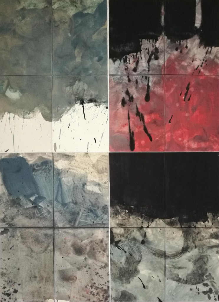 Aposiopèse est une série de 6 Polyptyques. Pigment, liant, glacis sur papier Rives. 2020/2021.