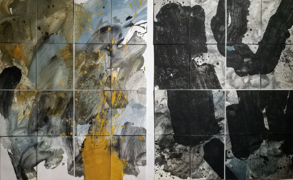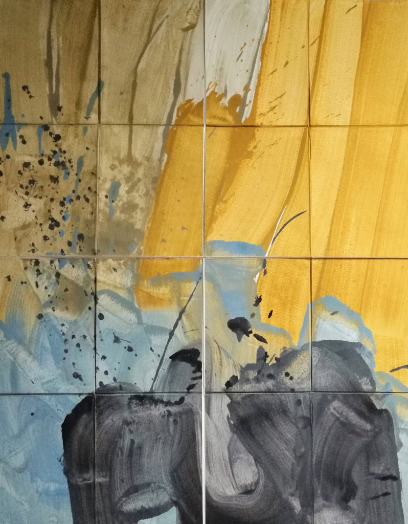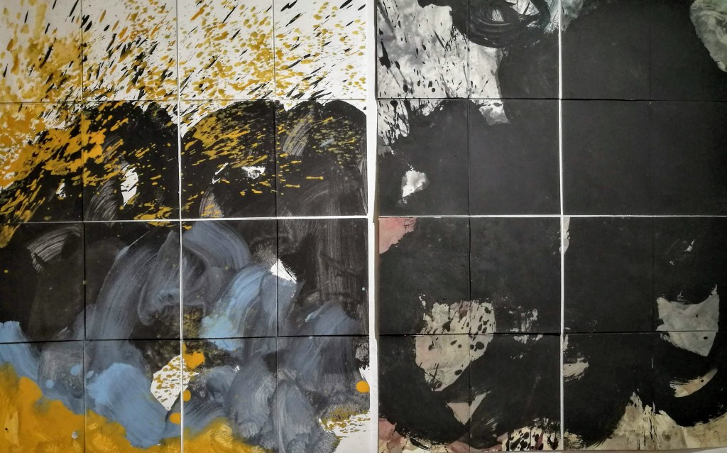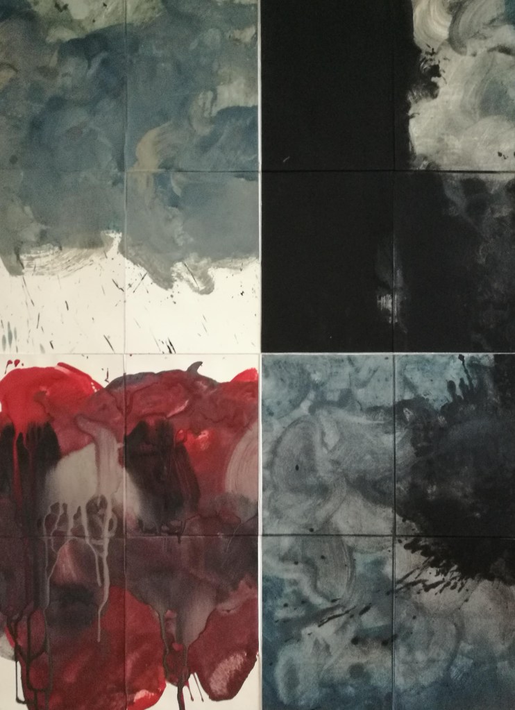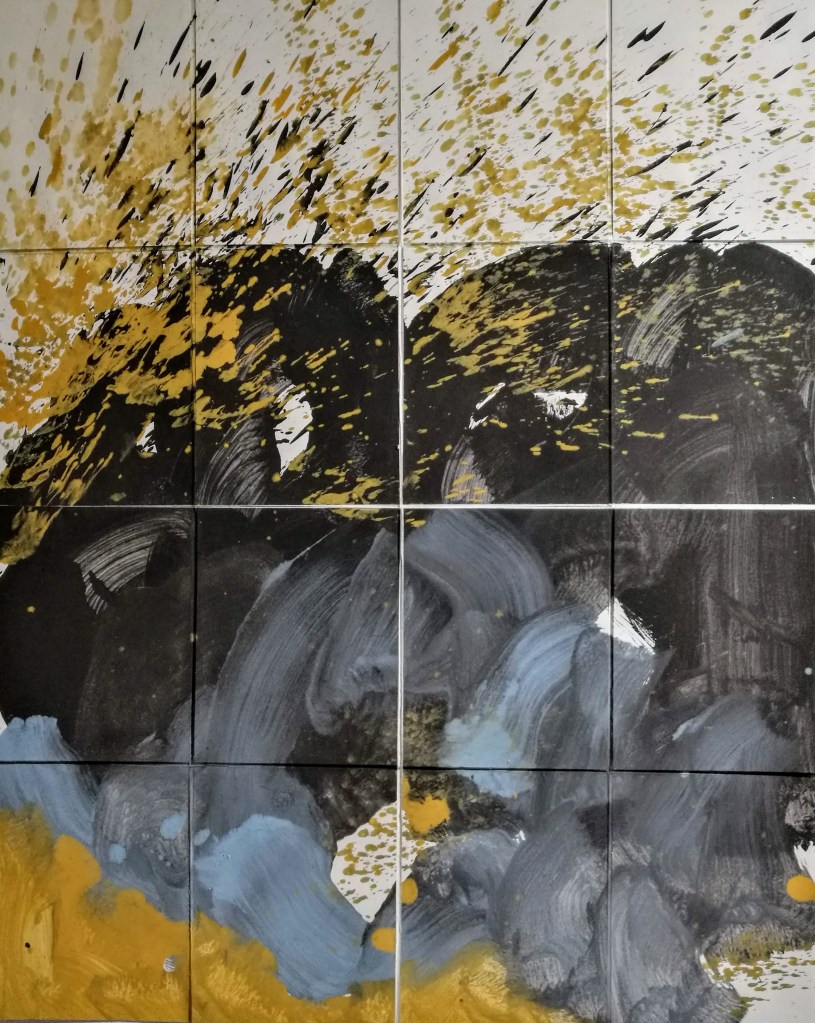 Aposiopèse est une série de 6 Polyptyques. Pigment, liant, glacis sur papier Rives. 2020/2021.