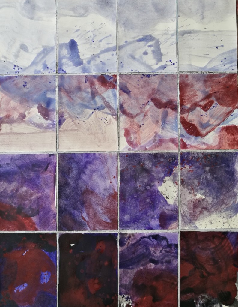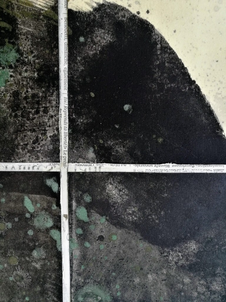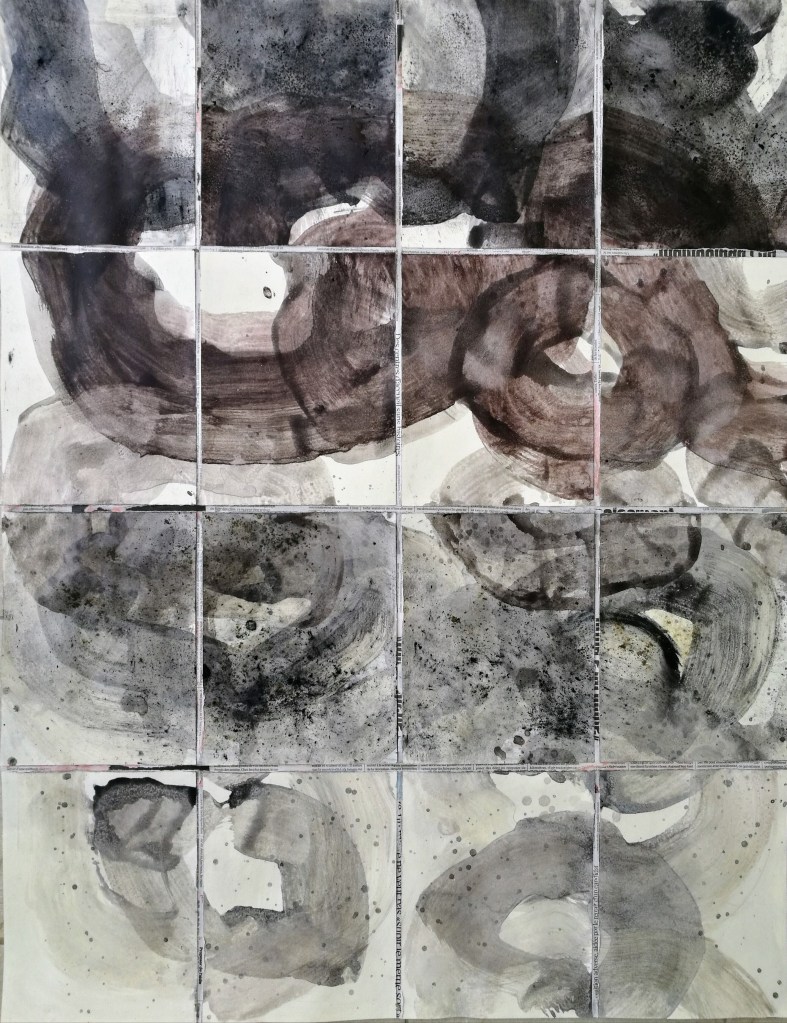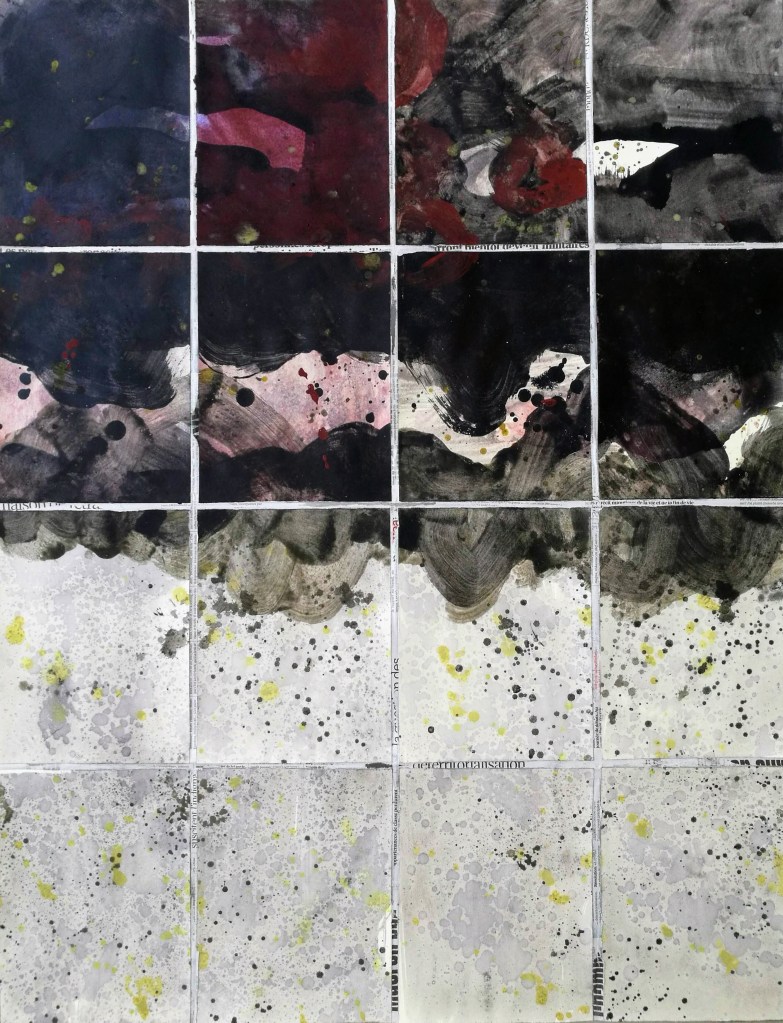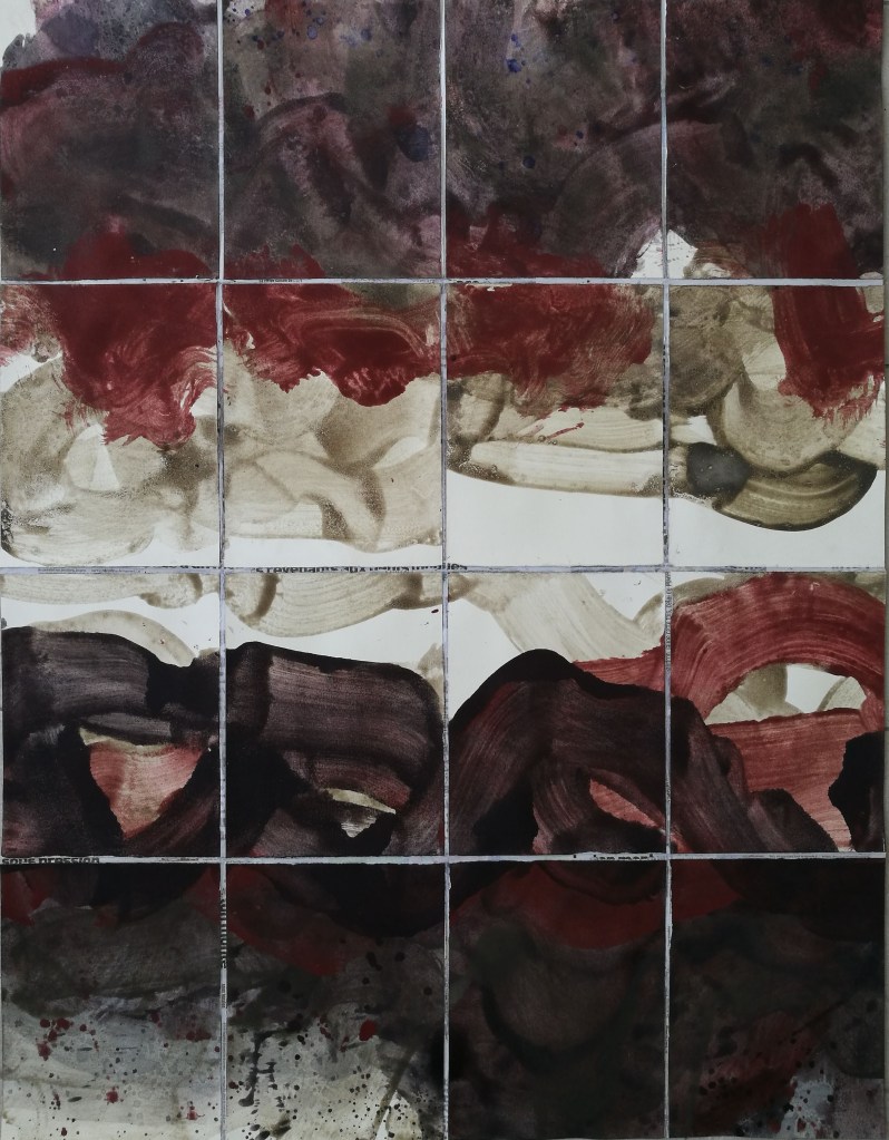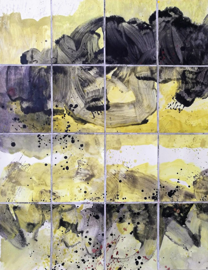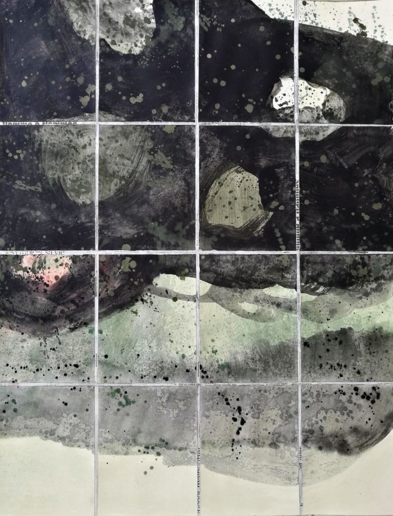 Altéritas est une série de 10 peintures accompagnés de 10 extraits d’écrits. Pigment, liant, mine de plomb et glacis sur papier Rives. 10 polyptyques de 118x73cm. L’ensemble des oeuvres fait 354x219cm. 2024